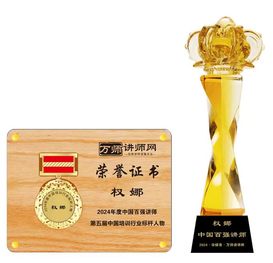 恭喜權娜獲萬師講師網2024年度中國百強講師 暨第五屆中國培訓行業標桿人物