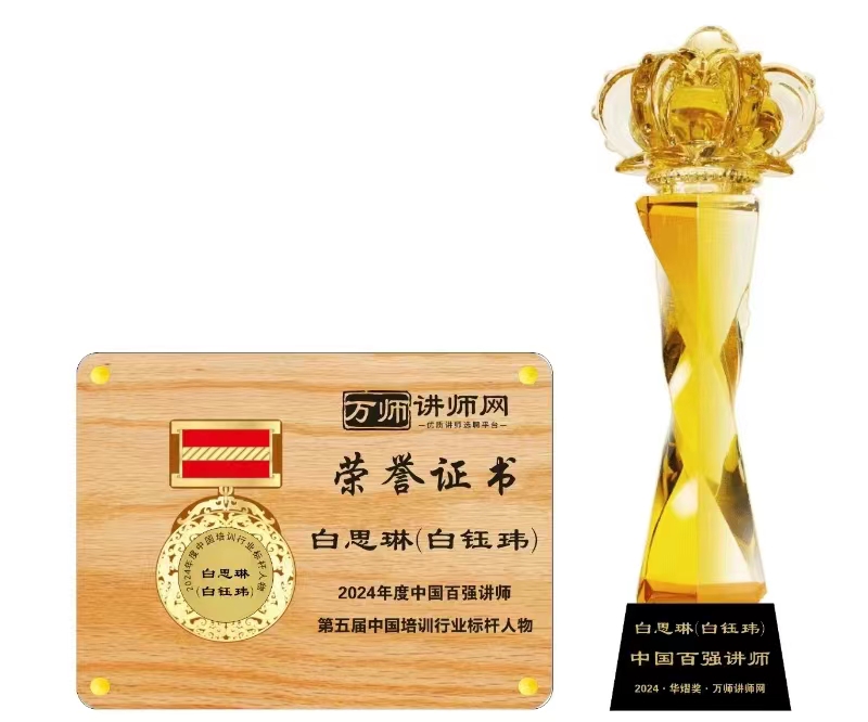 恭喜白思琳(白鈺瑋)老師獲萬師講師網(wǎng)2024年度中國百強講師 暨第五屆中國培訓(xùn)行業(yè)標(biāo)桿人物